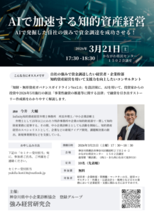 強み経営研究会では、すでにお知らせしているとおり、来る3月21日(土)に本年度第2回セミナーを開催します。 このセミナーで、新たな講演を追加しましたのでお知らせします。受講料は無料です。先着10名。お申し込みをお待ちして […]