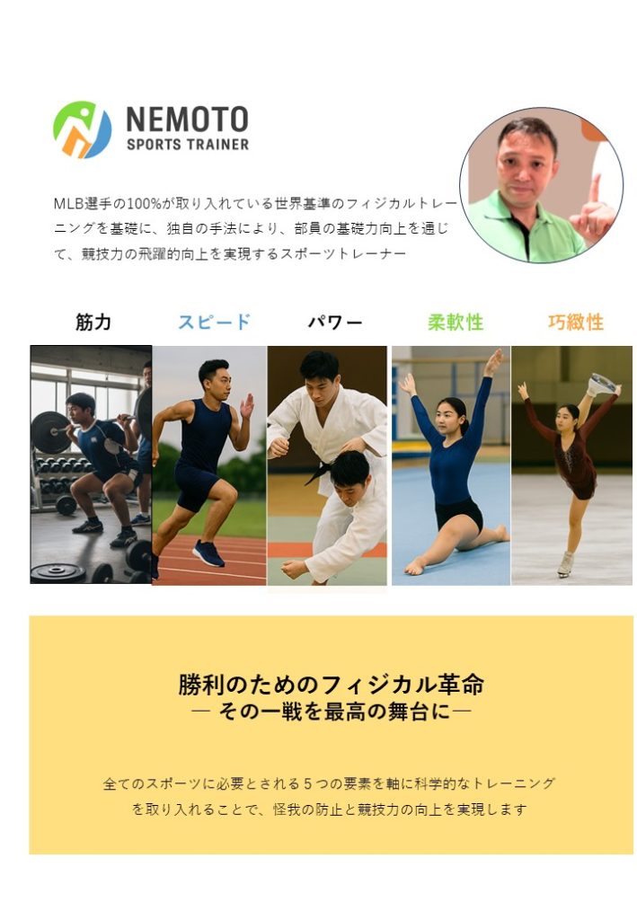 | 同上★最新 | G社:スポーツトレーナー | 主に中高生向けのスポーツチームの支援を目的とした事業案内 | 2で成果物をご覧ください |